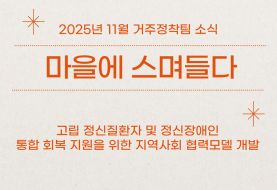 센터이야기 카테고리 전체센터이야기열린 분류 마을에 스며들다휴먼라이브러리 게시물 검색 검색대상 85 마을에 스며들다 거주정착팀 11월 소식지 작성자 최고관리자날짜 : 12-17 84 마을에 스며들다 거주정착팀 10월 소식지 작성자 최고관리자날짜 : 11-05 83 마을에 스며들다 거주정착팀 9월 소식지 작성자 최고관리자날짜 : 10-01 82 마을에 스며들다 거주정착팀 8월 소식 작성자 최고관리자날짜 : 09-02 81 마을에 스며들다 거주정착팀 7월 소식 작성자 최고관리자날짜 : 08-04 80 마을에 스며들다 2025년 제 5회 마음건강별별이야기 '마… 작성자 최고관리자날짜 : 07-04 79 마을에 스며들다 2025년 제 5회 마음건강별별이야기 '마… 작성자 최고관리자날짜 : 07-04 78 마을에 스며들다 2025년 제 5회 마음건강별별이야기 '마… 작성자 최고관리자날짜 : 07-04 목록 열린1페이지 2페이지 3페이지 4페이지 5페이지 6페이지 7페이지 8페이지 9페이지 10페이지 다음 맨끝